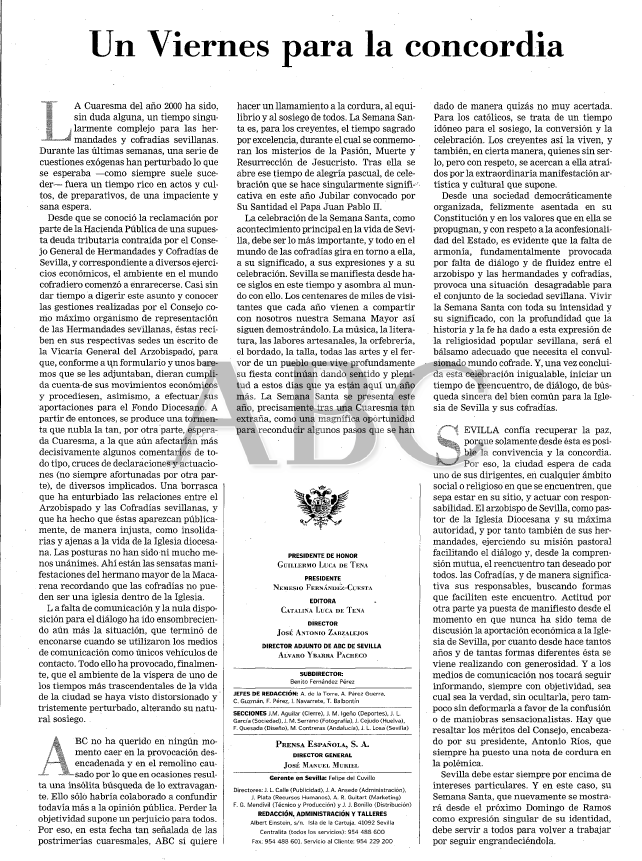 Ese mismo Viernes de Dolores, la editorial del ABC iba dedicada íntegramente a todo este tumulto, con ganas de apaciguar lo que estaba siendo una guerra en toda regla.