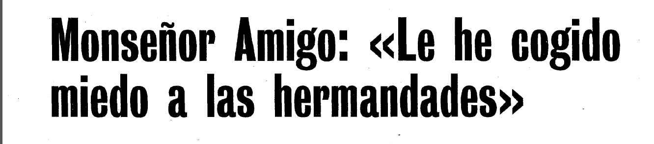 En este ambiente de crispación, peleas e inclusos odios entre hermandades y Palacio se sobrepasaron varias líneas rojas por parte de ambos bandos. Eso hizo que la situación se fue calentando hasta que el Viernes de Dolores de ese mismo año, Fray Carlos, con un poco de cinismo, en mi opinión, se abría abiertamente en una entrevista a Fernando Carrasco.