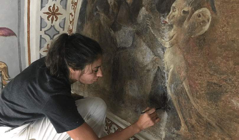 Tras una fase previa de documentación, estas labores comenzaron con la fijación de estratos en algunos puntos de soporte para evitar posibles desprendimientos. Posteriormente se ha eliminando las capas de cal y el oscurecimiento producido por el humo de las velas, se quitaron escayolas y se sustituyeron estucos no idóneos por otros de igual o similar característica al original. Seguidamente, se hizo una consolidación de la superficie a pincel para una reintegración cromática, empleándose acuarela y pigmentos naturales reversibles, además de una protección final con resina acrílica pulverizada.