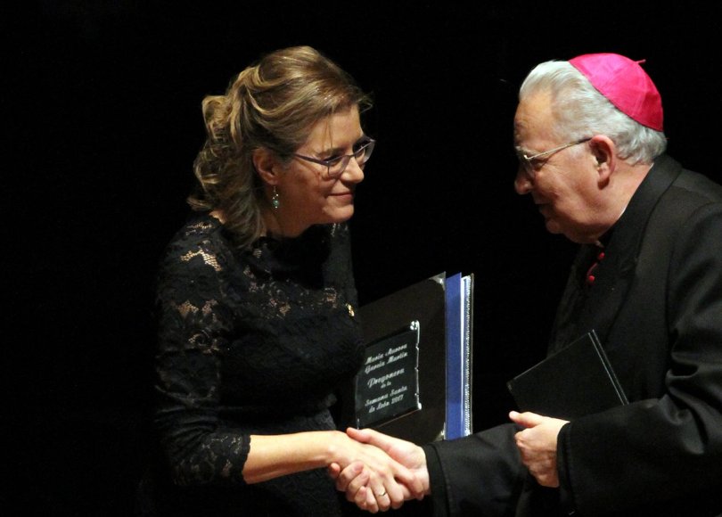 García Martín pertenece a la corporación del Martes Santo, ostentando el cargo de fiscal y de auxiliar de caridad. Natural de León, es licenciada en Derecho, teniendo una relación muy estrecha con la Semana Santa leonesa y habiendo sido pregonera en 2017 en su tierra.
