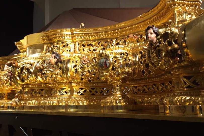 Además, Pardo está haciendo lo propio con todas las cabezas de los querubines, conservando igualmente la policromía original. Por su parte, también se está efectuando la rehabilitación de los estofados de frutas y flores obras del taller de Manolo Calvo, recuperando partes imperceptibles en estos últimos años.