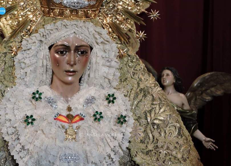Para finalizar, desde el barrio de San Jerónimo, la Virgen de la Salud de la Agrupación Parroquial del Rosario el pasado sábado. A los pies del altar mayor, la dolorosa lució manto verde y saya blanca para la ocasión. Tras la imagen y a modo de altar, el techo de palio y la bambalina como dosel, flanqueado por los candelabros de cola y una tanda de candelería.