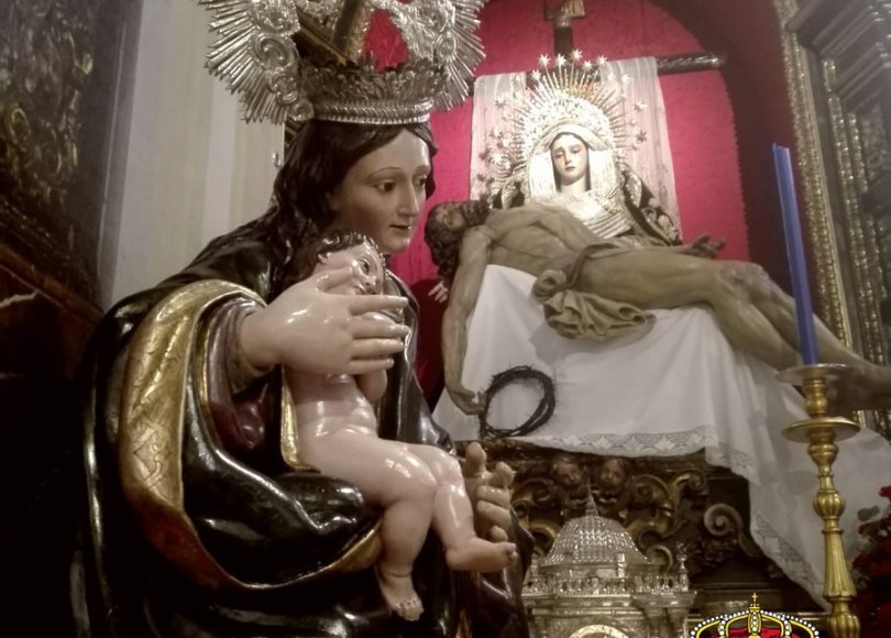 Desde el pasado viernes 28 de diciembre, la Virgen de Belén que preside el retablo mayor de la Hermandad del Baratillo se encuentra en su capilla tras su restauración.