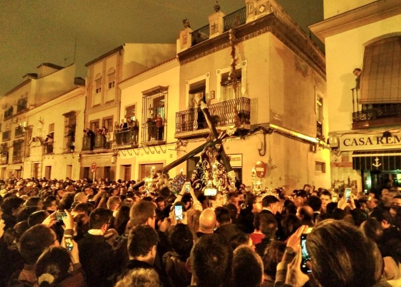 Triana comienza a contar los días para la llegada de una nueva Semana Santa. Tras la finalización de sus cultos en la real parroquia de Santa Ana, el Cristo de las Tres Caídas fue trasladado en sus andas procesionales hacia la capilla de los Marineros.