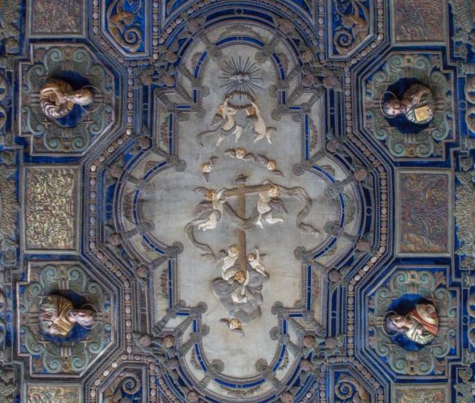 Tras la finalización de esta Semana Santa, la Hermandad del Buen Fin ha iniciado los trabajos de restauración del techo de palio de la Virgen de la Palma.