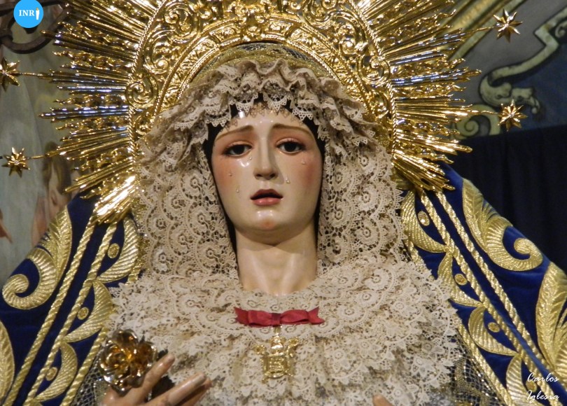 Desde el pasado sábado 11 de mayo, la dolorosa de la corporación ya se encuentra en sus andas para el rosario vespertino del próximo lunes día 13. Luce manto azul, saya blanca y diadema para la ocasión. Además presenta en su pecherín la réplica de la medalla de la ciudad.