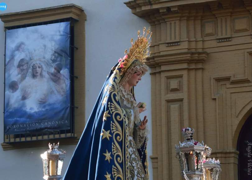 . Fue portada en andas por sus hermanos y devotos por las calles de su feligresía, engalanadas con farolillos de papel de seda, banderolas y pancartas, predominando el color celeste y blanco.