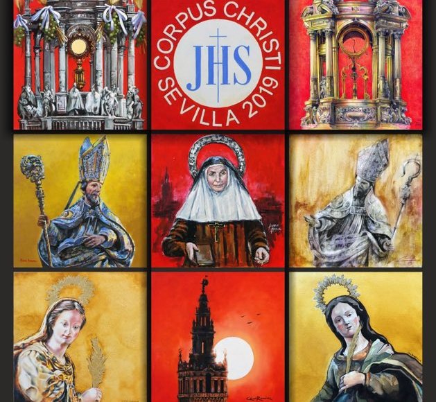 El Ayuntamiento de Sevilla, a través de la delegación de Seguridad, Movilidad y Fiestas Mayores, ha presentado este viernes 31 de mayo el cartel del Corpus Christi de 2019. En esta edición fueron designados catorce artistas que, por primera vez, han realizado una obra colectiva para el anuncio de esta festividad de la ciudad.