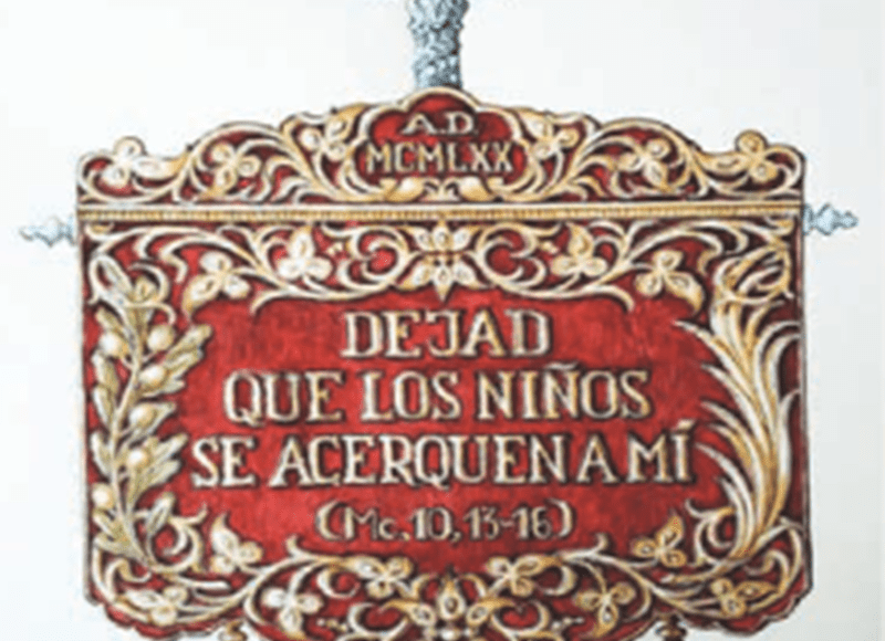 Está compuesta por unos bordados donde se puede leer ‘Dejad que los niños vengan a mí (Mc, 10, 13-16)’, además del año de esta efeméride en números romanos ‘MCMLXX’. Correrá a cargo de su ejecución de José Antonio Grande de León, mientras que el asta, rematada con la imagen de Zaqueo será de Orfebrería Villarreal. Además le corresponderán sus nuevas cuatro varas de acompañamiento.