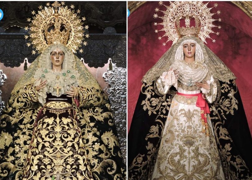 Tras la finalización de sus respectivos besamanos, las dolorosas de las corporaciones de la Macarena y de la Esperanza de Triana regresaron a sus respectivos camarines para la conmemoración de la Navidad.