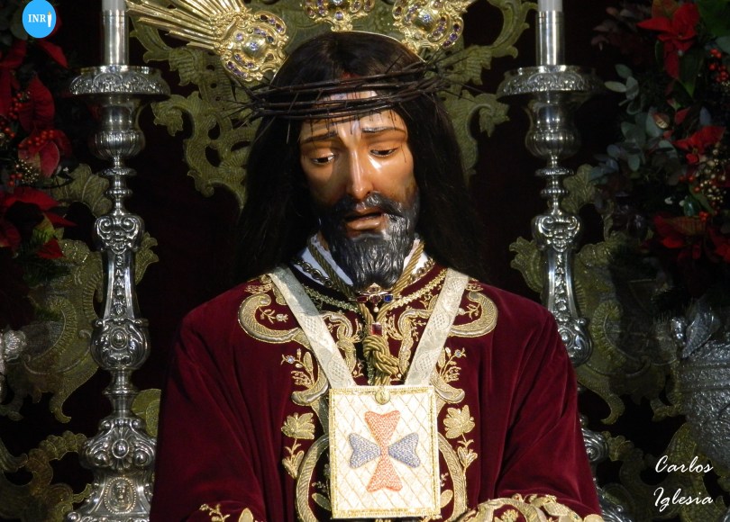 Con las manos entrelazadas y con potencias y corona de espinas estuvo dispuesto luciendo para la ocasión la túnica bordada por Patrocinio López entre 1865 y 1869, conocida como la de las ‘hojas de acanto’.