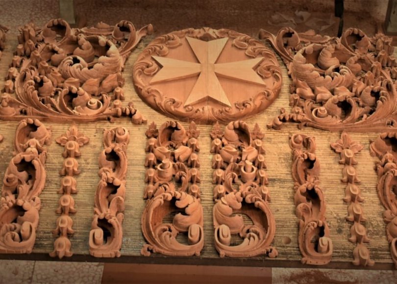 El proyecto presentado contempla la realización del mismo, sobre madera de cedro (tallas, columnas y molduras) y tendrá unas dimensiones aproximadas de cinco metros de alto y 3,25 metros de ancho.