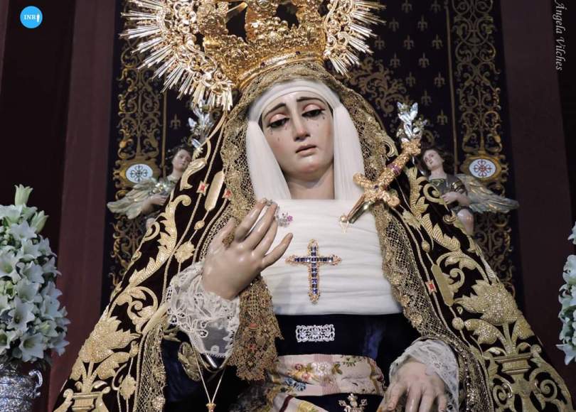 La Virgen de la Victoria de la Hermandad de las Cigarreras estuvo expuesta en su besamanos de esta Cuaresma. Lucía su manto de vistas y saya azul de terciopelo para la ocasión para recibir a sus fieles, mientras que su altar estuvo presidido por el escudo de su propia formación musical, flanqueado con dos pequeños altares con candelería de cera blanca.