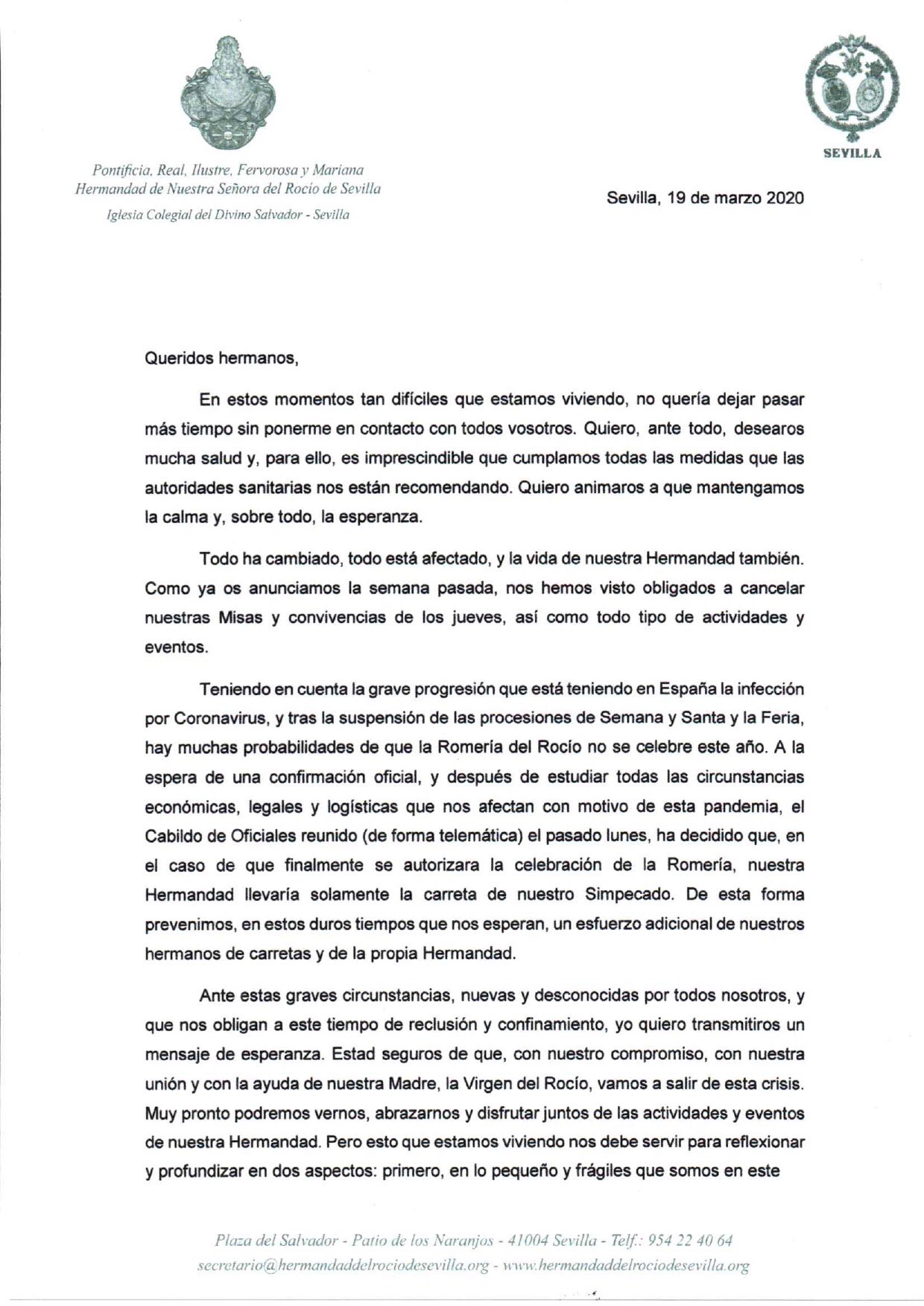 Carta del Rocío de Sevilla
