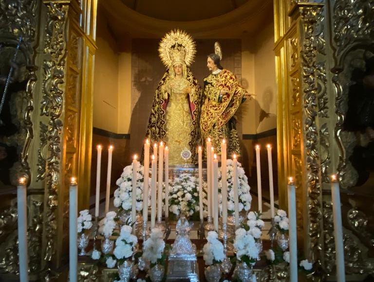 Se puede contemplar a la dolorosa en su camarín, acompañado de San Juan Evangelista, con su manto de vistas de terciopelo burdeos y saya bordada en tisú. Completa este montaje varios candeleros de cera blanca y flores blancas propias de su exorno cada Domingo de Ramos.
