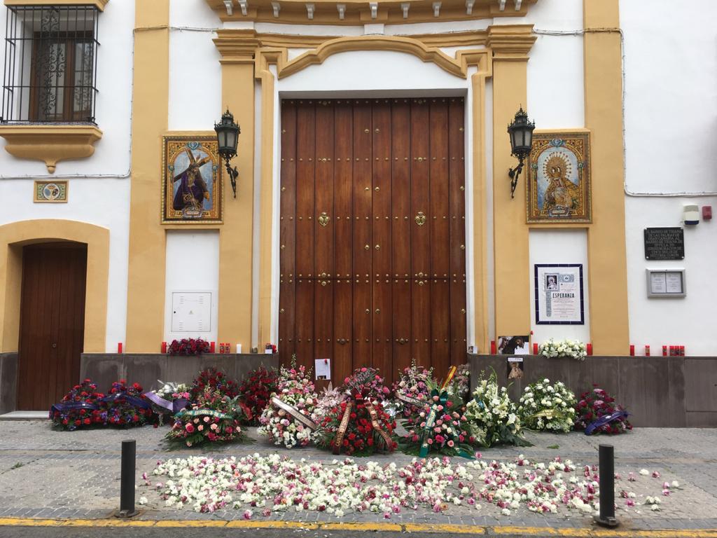 Flores en la puerta de la capilla de los Marineros