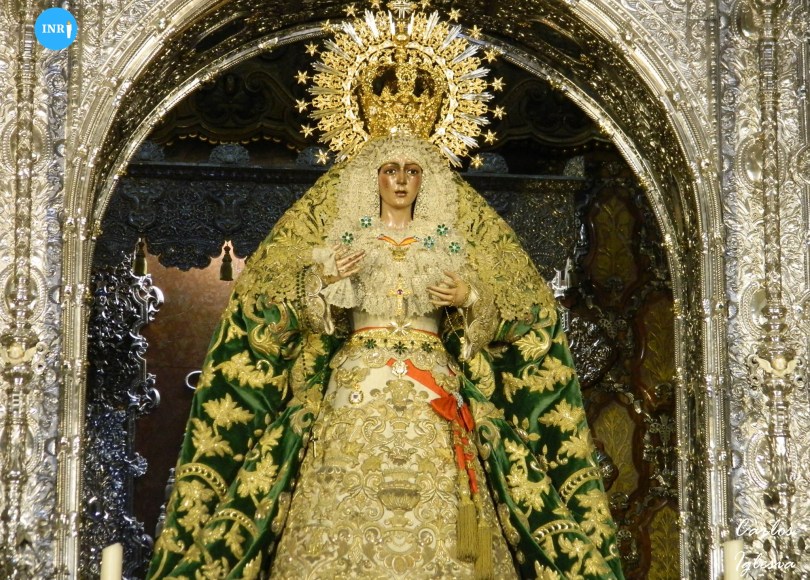 Para la ocasión, la dolorosa luce la saya ‘de los volantes’, confeccionada por Victoria Caro en 1936 y diseñada por Ignacio Gómez Millán, y el manto “de los Cisneros”, realizado con bordados del antiguo palio de Juan Manuel Rodríguez Ojeda entre 1907 y 1908, adaptados y confeccionados sobre terciopelo verde en 1967 por el taller de Carrasquilla Perea.