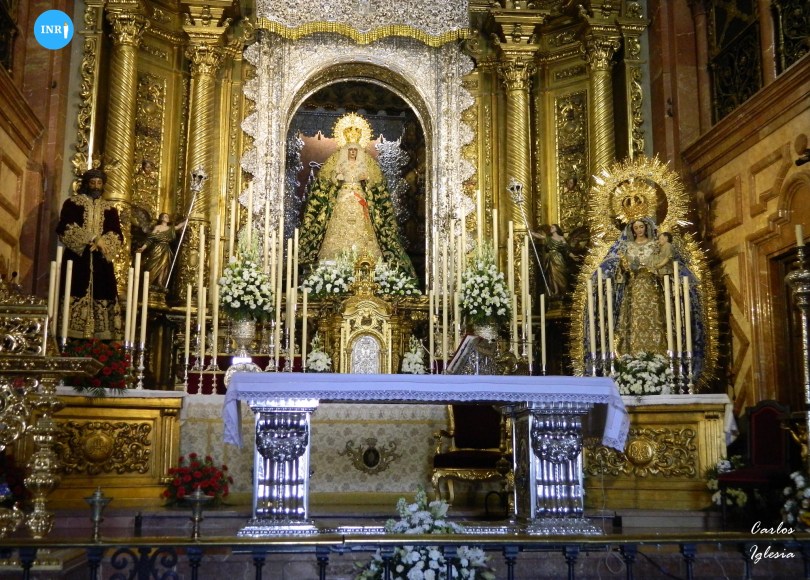 Este martes 2 de junio, la basílica de la Macarena ha amanecido con una estampa atípica. El Señor de la Sentencia y la Virgen del Rosario han sido trasladados al presbiterio del altar mayor de forma temporal, con motivo de la instalación de sendas cortinas antiincendios en sus respectivos altares.