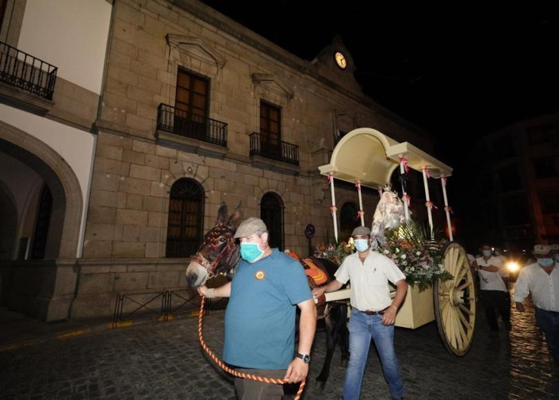 La imagen fue transportada en una carreta por dos mulas. Todos los integrantes de la comitiva guardaron sus correspondientes medidas de seguridad para la ocasión.