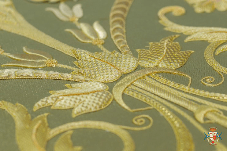 En este sentido, a modo de regalo por esta efeméride, un numeroso grupo de hermanos y devotos han querido obsequiar con un nuevo manto bordado para la dolorosa de la corporación del Sábado Santo. Además han podido presenciar el pasado lunes 14 de julio el actual estado de estas labores.