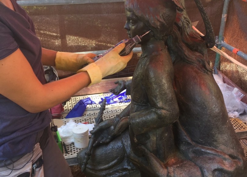 Además de haber limpiado por completo el conjunto, la Gerencia de Urbanismo ha aplicado un tratamiento especial de protección a la escultura de bronce, con objeto de minimizar los efectos de los factores ambientales. Asimismo, se han reparado algunas grietas producidas en la base de los parterres y se ha tratado y pintado la reja a baja altura que rodea el monumento.