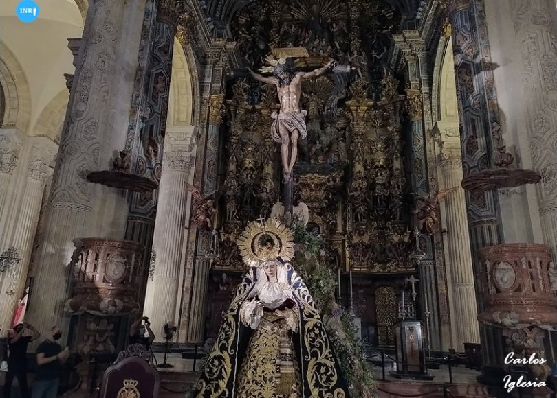 Y por último, el espectacular Cristo del Amor levantado sobre un majestuoso calvario de flores en el crucero de la colegial del Salvador, bajo la bóveda principal y enmarcado en el grandioso retablo del templo, acompañado de la Virgen del Socorro en un Stabat Mater grandioso.
