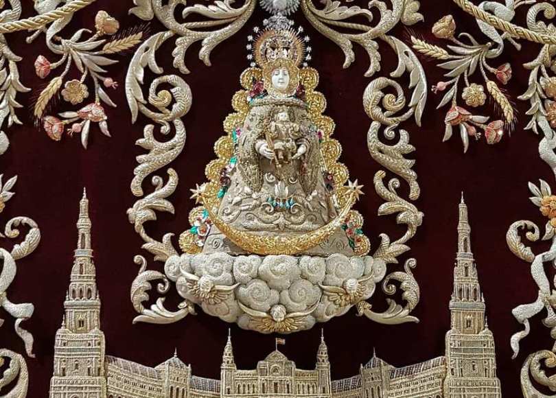 El simpecado mostraba alteraciones en la pieza textil como resultado de la funcionalidad de la obra, así como de las condiciones medioambientales a las que estaba sometida.