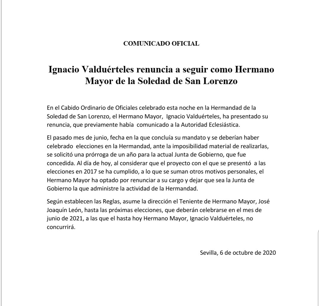 Comunicado de la Soledad de San Lorenzo