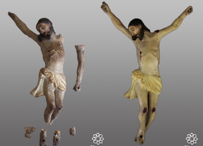 Una vez se llevaron a cabo los tratamientos curativos, se procedió a los tratamientos de restauración (más estéticos y visuales). Para ello se comenzó reintegrando volumétricamente aquellas faltas significativas, como manos, párpados o fragmentos de los pies. Tras esto, se procedió a la realización de test de solubilidad para la limpieza química que consistió en la eliminación de una gran acumulación de barnices, material graso y suciedad.