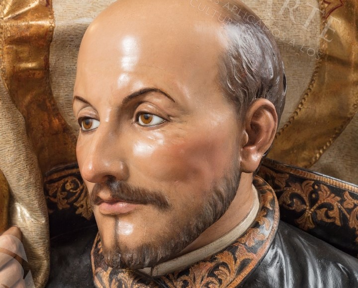 Tras algo más de cuatro meses de trabajo, la imagen de San Ignacio de Loyola ha regresado al hall del colegio Portaceli tras su restauración. Estas tareas han sido realizadas por le empresa Gestionarte.