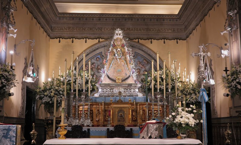En celeste, el color propio de este tiempo, la Virgen luce una doble sobre manga y el Niño viste el traje realizado, por encargo de la Matriz en 1986, por los hermanos Benítez y pasado en 2011 a nueva seda celeste por José Manuel Vega Morales. El manto, es el original de este traje, cuyo tisú se ha teñido en un azul oscuro.