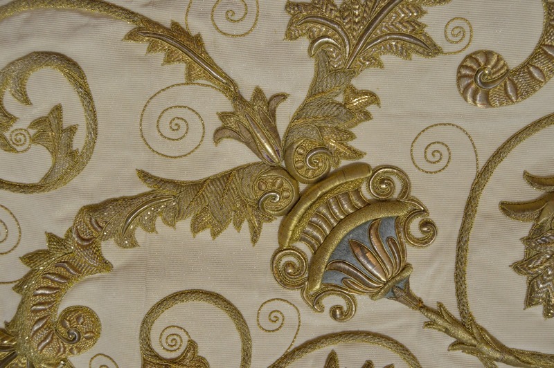 Por último se ha procedido a la fijación de aquellas zonas del bordado con presencia de hilos y elementos decorativos sueltos, mediante el sistema de costura, llevando tanto los hilos como los elementos decorativos a su disposición original.