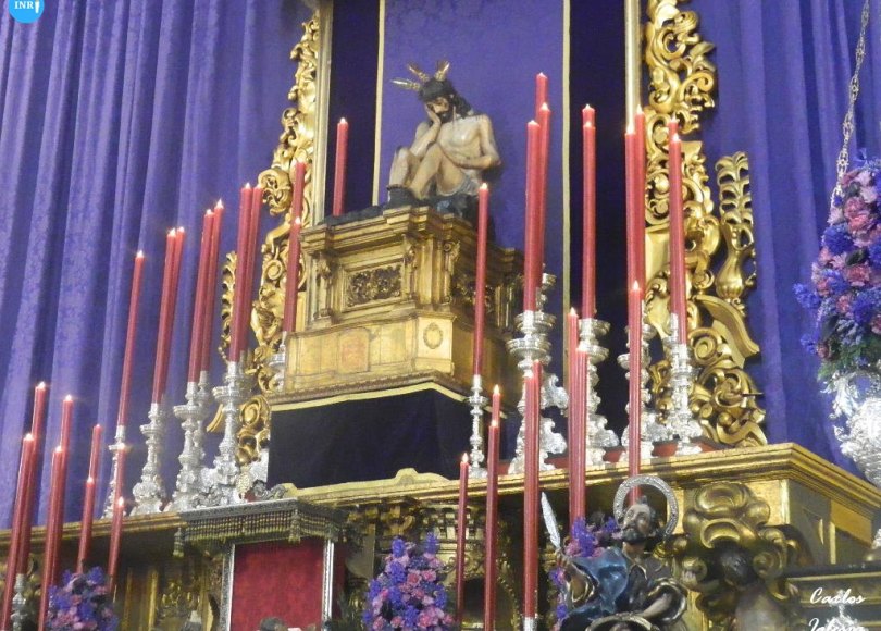 Varias tandas de candelería de cera roja se pudieron ver a sus pies, además de cuatro jarras con flores de tonalidad violácea, dejando así la imagen clásica de sobriedad y elegancia que caracterizan estos cultos.