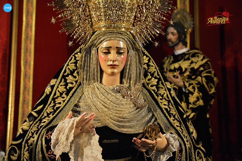 En el año de 1965, el año de las misiones generales en Sevilla, la imagen fue trasladada a la barriada de los Pajaritos. Presidió el cruce de las calles Azor y Estornino. Sale en estación de penitencia a los pies del crucificado, en modo de Stabat Mater, en el Martes Santo del año 1969, desde 1980 en su paso de palio y desde 2016 es acompañada por San Juan Evangelista.