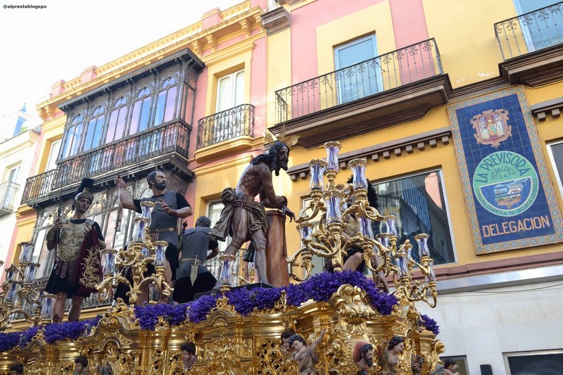 De igual modo, la saya bordada en terciopelo azul de la dolorosa, hecha en los talleres de Santa Bárbara en 1995. Para finalizar, también estará la figura del soldado flagelante del paso de misterio del Señor de la Sagrada Columna y Azotes, obra de José Antonio Navarro Arteaga en 2003.