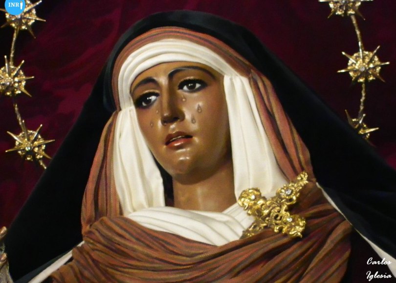 Tras los cultos del Cristo de las Tres Caídas, la Virgen de la Esperanza de Triana se encuentra en su camarín vestida de hebrea.
