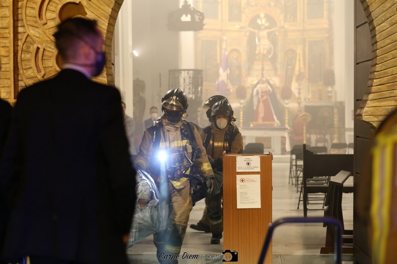 Se ha generado una importante humareda en el interior del templo, por lo se han realizado los trabajos de ventilación. Por fortuna no ha habido ninguna persona afectada.