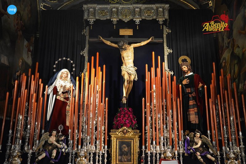 En estos días, se ha podido al crucificado bajo un dosel compuesto bajo un dosel. A la derecha de la imagen estaba la Virgen de los Ángeles vestida de hebrea, como en toda la Cuaresma. A su izquierda se situó la imagen de San Juan Evangelista de la Hermandad de la Resurrección. El latar estuvo compuesto por varias tandas de candelería, además de varios ángeles.