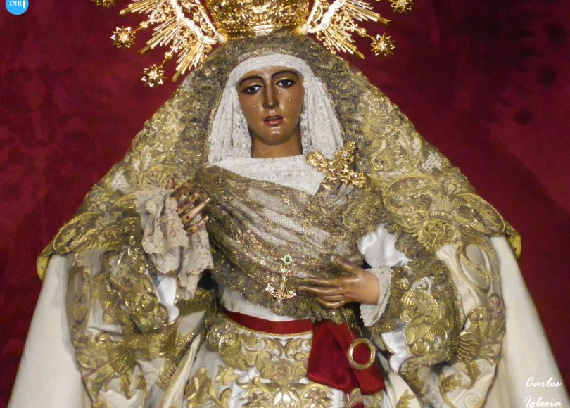 Desde el Domingo de Resurrección se puede ver a la dolorosa luciendo manto bordado blanco, que ha sido intervenido recientemente por José Espinar. También lleva saya blanca bordado del mismo color, a juego y fajín rojo, además, de la corona y toca de sobremanto.