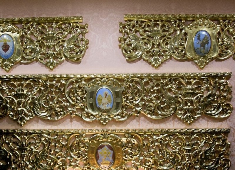 En lo que respecta a la terminación de la madera, para recuperar su aspecto original, similar al que debieron lucir en sus primeros años, se ha llevado a cabo en el taller de Anillo su dorado con técnica al agua y oro metal. Posteriormente patinado de forma correcta para matizar ligeramente el brillo de la lámina metálica y conferirle un aspecto apropiado a su futuro uso en el paso de nuestra procesión eucarística. Con tal motivo, y tras el estudio de un programa iconográfico apropiado al mismo llevado a cabo por Juan Manuel Bermúdez, se han diseñado y realizado sus cuatro cartelas por con la técnica de estofado al temple “al huevo” sobre superficie dorada con oro de ley de 23 ¾ doble grosor.