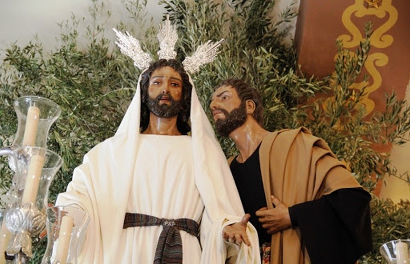 Esta corporación hacía su salida el Viernes de Dolores por las calles alcalareñas. La imagen de Nuestro Padre Jesús de la Paz en el beso de Judas es obra de Fernando Castejón, autor del Señor de Nazaret de Pino Montano. Le acompaña misterio Judas Iscariote, del mismo imaginero y procesionaba hasta 2019 con la Banda de Cornetas y Tambores de Nuestra Señora de la Merced del Viso del Alcor.