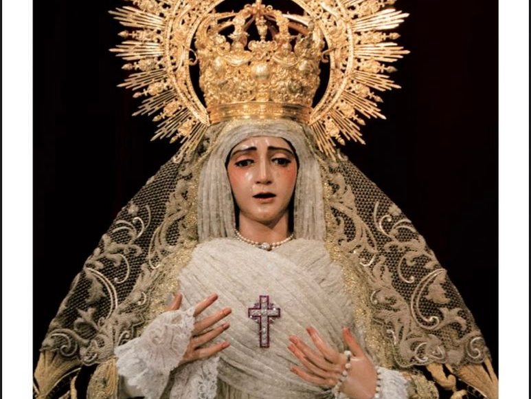En cuanto a las tarjetas postales presentan una imagen de medio cuerpo de la dolorosa captada en el altar extraordinario que se diseñó la pasada Semana Santa y que reproducía el mismo altar montado en los años 30’s. La fotografía es obra de Saturnino Palomo.