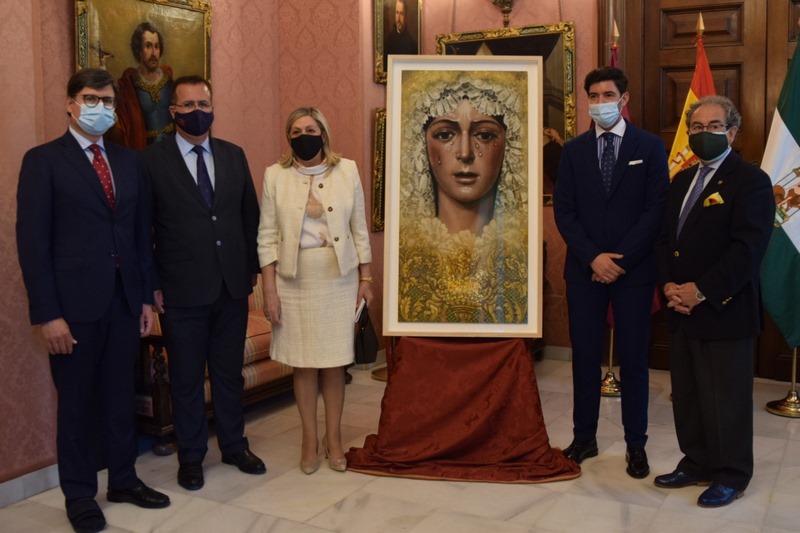 El cartel ha sido presentado en el ayuntamiento de Sevilla por el teniente de alcalde Juan Carlos Cabrera, el hermano mayor de la Macarena, José Antonio Fernández Cabrero, y el propio autor de la obra, Manuel Peña Suárez.