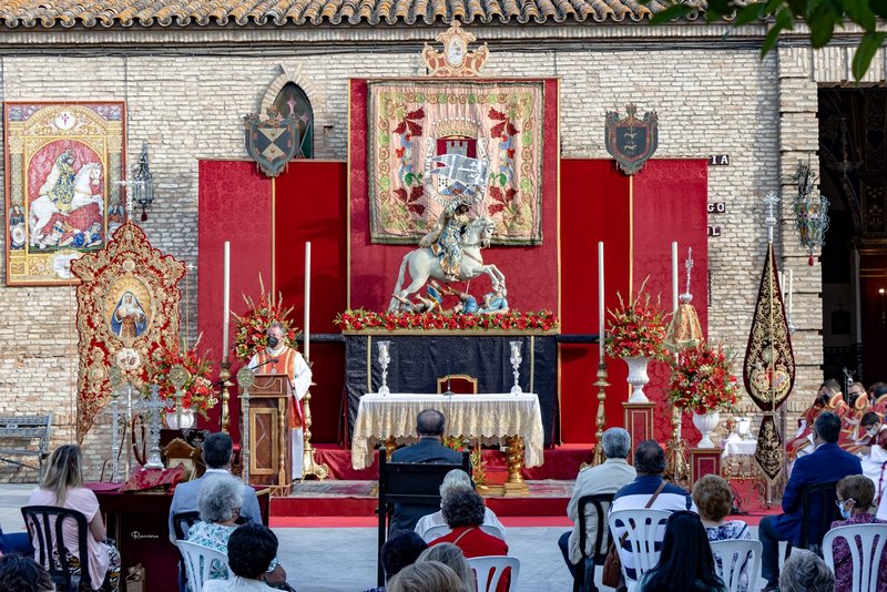 La imagen Santiago Apóstol presidió este culto junto con el estandarte y el simpecado de la Virgen de la Soledad, estando el altar efímero ubicado en la fachada de la iglesia parroquial santiaguista.