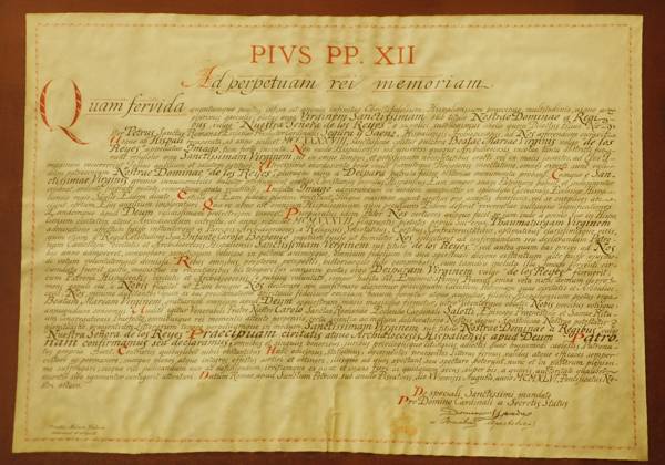 Bula papal de Pío XII del patronazgo de la Virgen de los Reyes
