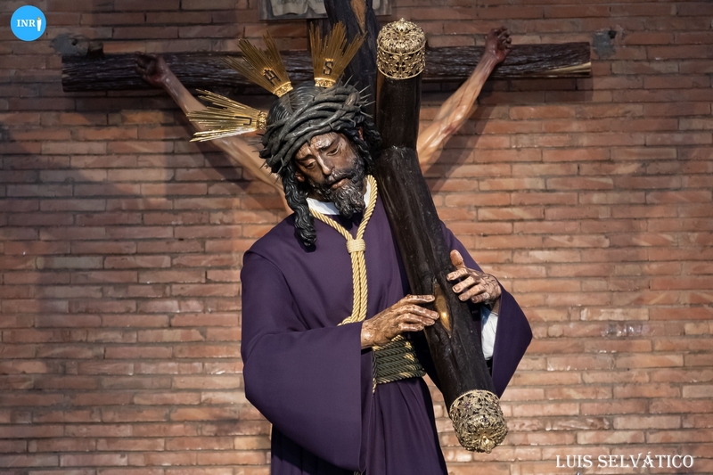 La imagen preside el presbiterio de este templo en sus andas y vestido con su túnica morada. Está flanqueado por cuatro hacheros de cera blanca. Tras la imagen se sitúa el crucificado que realizó para este templo en 2019 Manuel Martín Nieto.