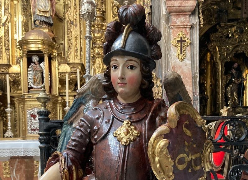 Cabe recordar que esta imagen del árcangel San Miguel es una talla de Cristóbal Ramos datada del siglo XVIII. Llegó a estar en el mismo retablo del Cristo de la Sangre.
