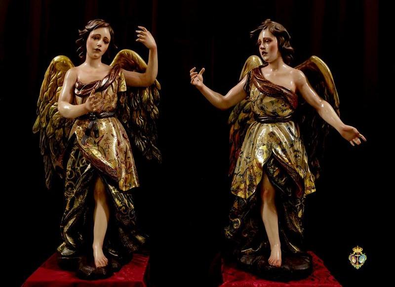 Ambas piezas son de talla completa con medidas de un metro con veinte centímetros y realizadas en madera de cedro, siguiendo el estilo barroco y con reminiscencias renacentistas, teniendo las alas y los ropajes dorados en oro fino, estofados al temple y cincelados.