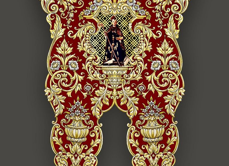 Se ha basado en los modelos clásicos del bordado sevillano, siguiendo el estilo neobarroco componiéndose de dos zonas bien diferenciadas, todo sobre terciopelo carmesí.