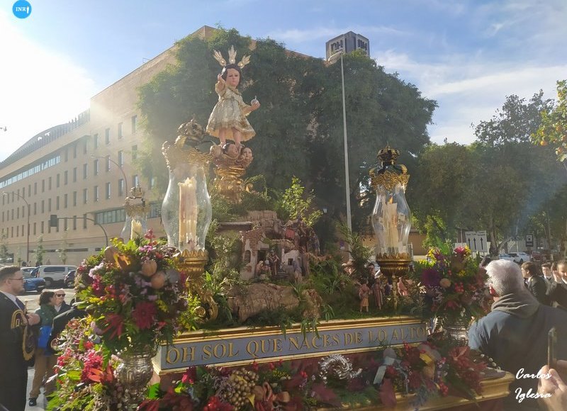La imagen lució túnica de tisú para la ocasión, y el paso estaba adornado con escenas del Nacimiento de Jesús, con figuras del portal de Belén. A las 14.00 horas realizaba su entrada.